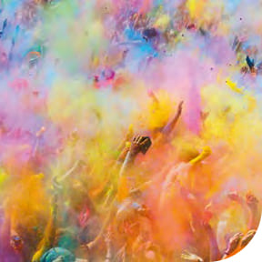 This is a recipe for show-stopping immersive colour. A double helping of warm brights, Fascination and Party Time are harmonised with two complementary greens, Diving Pool and Sports Green.